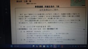12/22、日韓友好税理士連盟の忘年食事会(代々木YOGIPOCHA)。